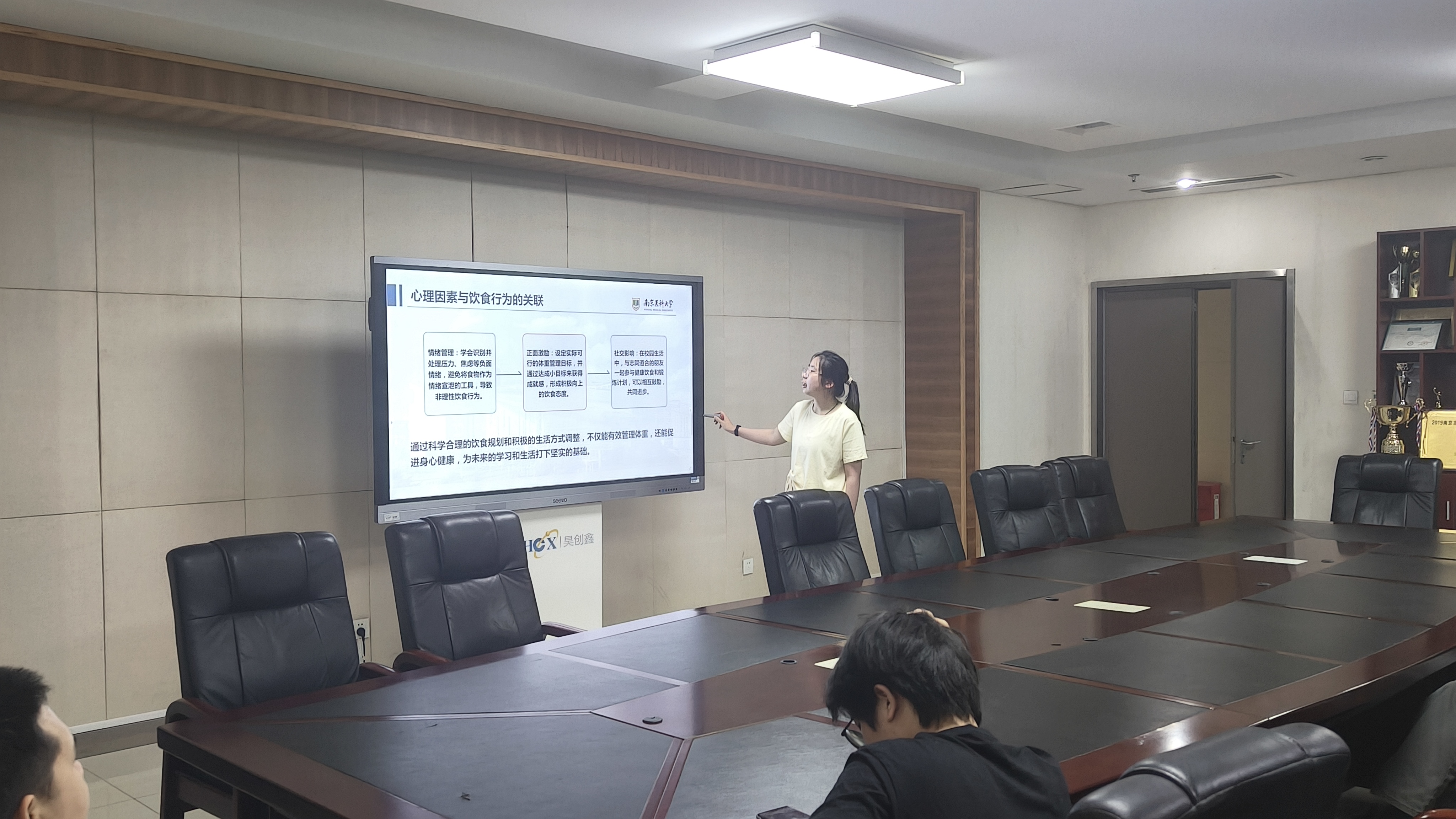 南京医科大学2024级体育保健班学期末举办“大学生体重管理”主题分享会,结合学业压力、社交聚餐、宿舍生活等实际场景,设计实用解决方案。