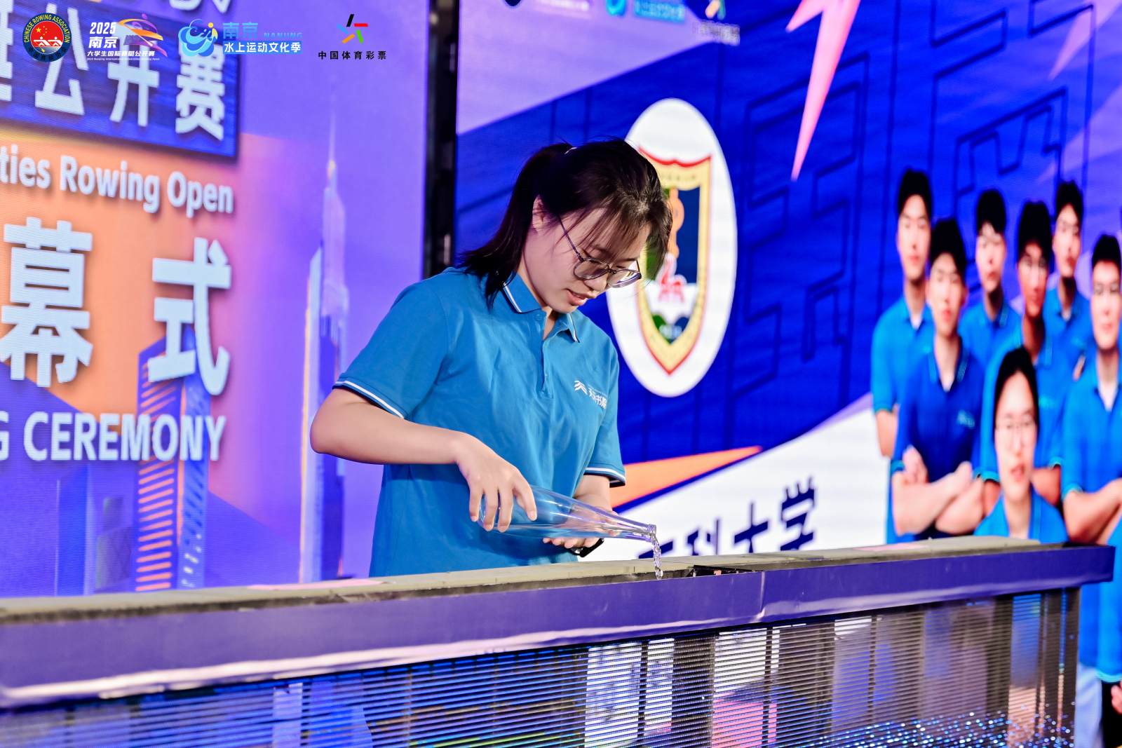 12日晚,开幕式在长江五马渡码头长江之恋游轮上隆重举行。来自全国30所高校的300余名赛艇健儿齐聚一堂。33支队伍队长共同将名河之水注入启动装置,伴随光束穿越世界名城地标、汽笛鸣响,2025南京・大学生国际赛艇公开赛正式启航!