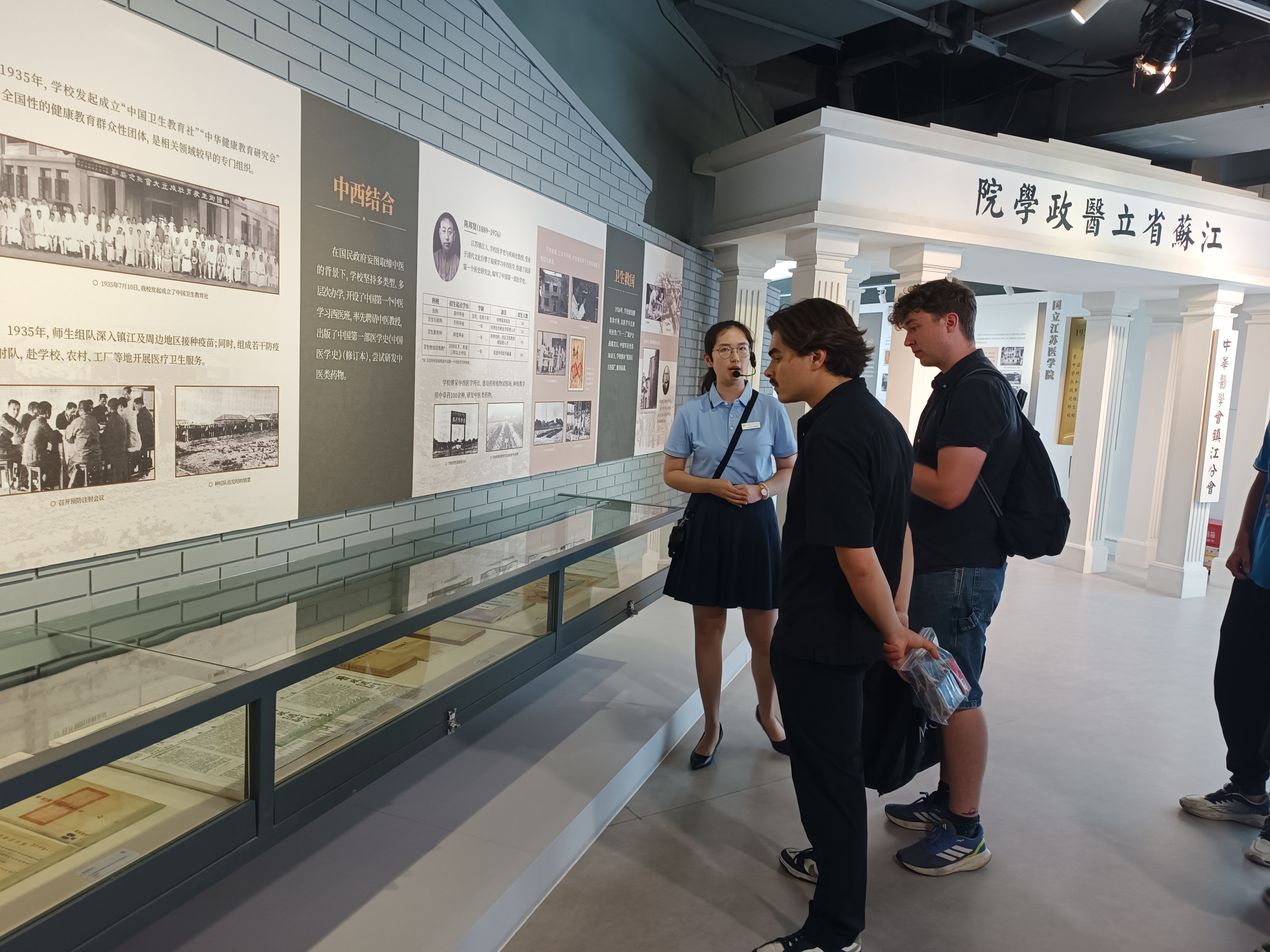 赛事期间活动精彩纷呈。9月12日,备受瞩目的赛艇进校园活动走进我校江宁校区,为秋日校园注入了浓厚的国际文化交流气息。来自英国牛津大学与法国雷昂那多达芬奇大学联盟的赛艇队员与我校三十余名学生代表一起参观校史馆,共同沉浸于我校丰厚的办学传统与文化精神之中,漫步校园,感受学府秋韵。随后在学海楼展开了亲切交流,现场气氛热烈、互动频繁,双方围绕学习体验、体育精神与文化差异等话题畅所欲言,思想的涟漪在交流中层层荡开。活动尾声,双方在校门口互赠礼品,那精心准备的友谊之桨,既彰显赛艇运动之美,更承载了彼此间真挚的情谊,为这段难忘的校园记忆绘下了精彩而圆满的句号。