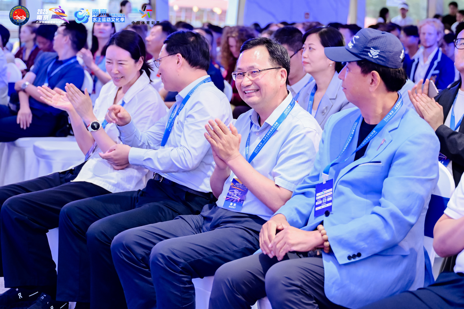 12日晚,开幕式在长江五马渡码头“长江之恋”游轮上隆重举行。来自全国30所高校的300余名赛艇健儿齐聚一堂。33支队伍队长共同将“名河之水”注入启动装置,伴随光束穿越世界名城地标、汽笛鸣响,2025南京・大学生国际赛艇公开赛正式启航!