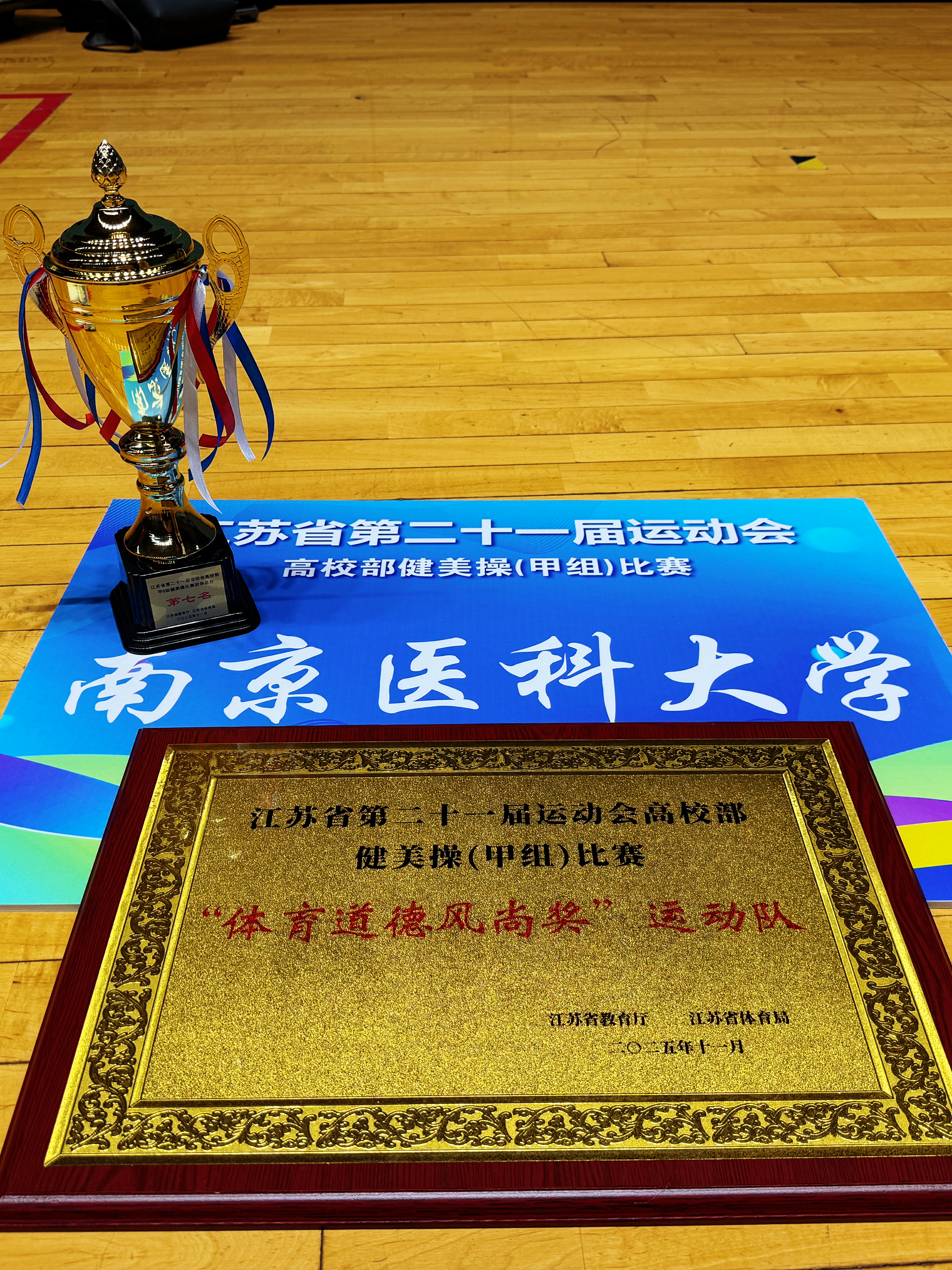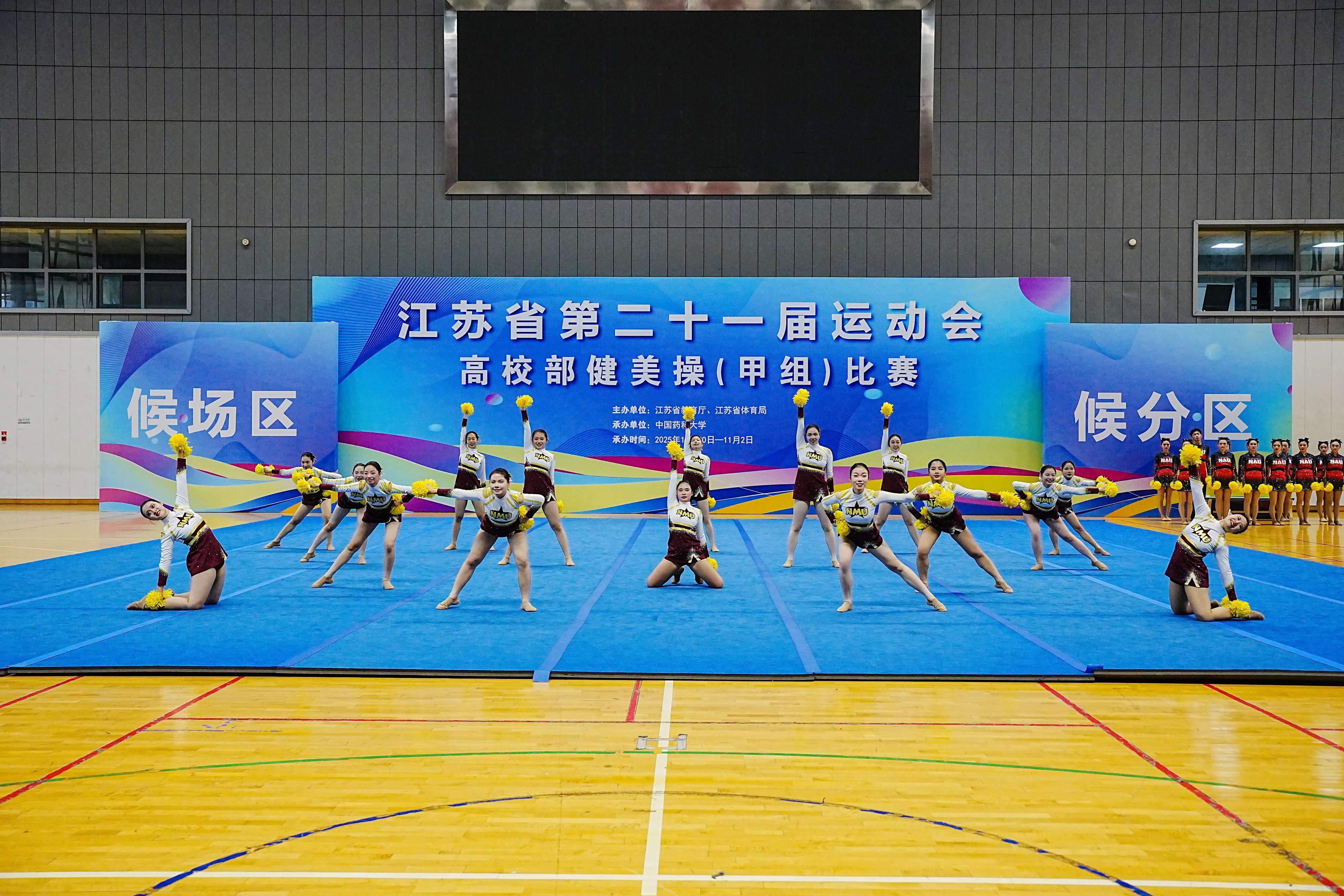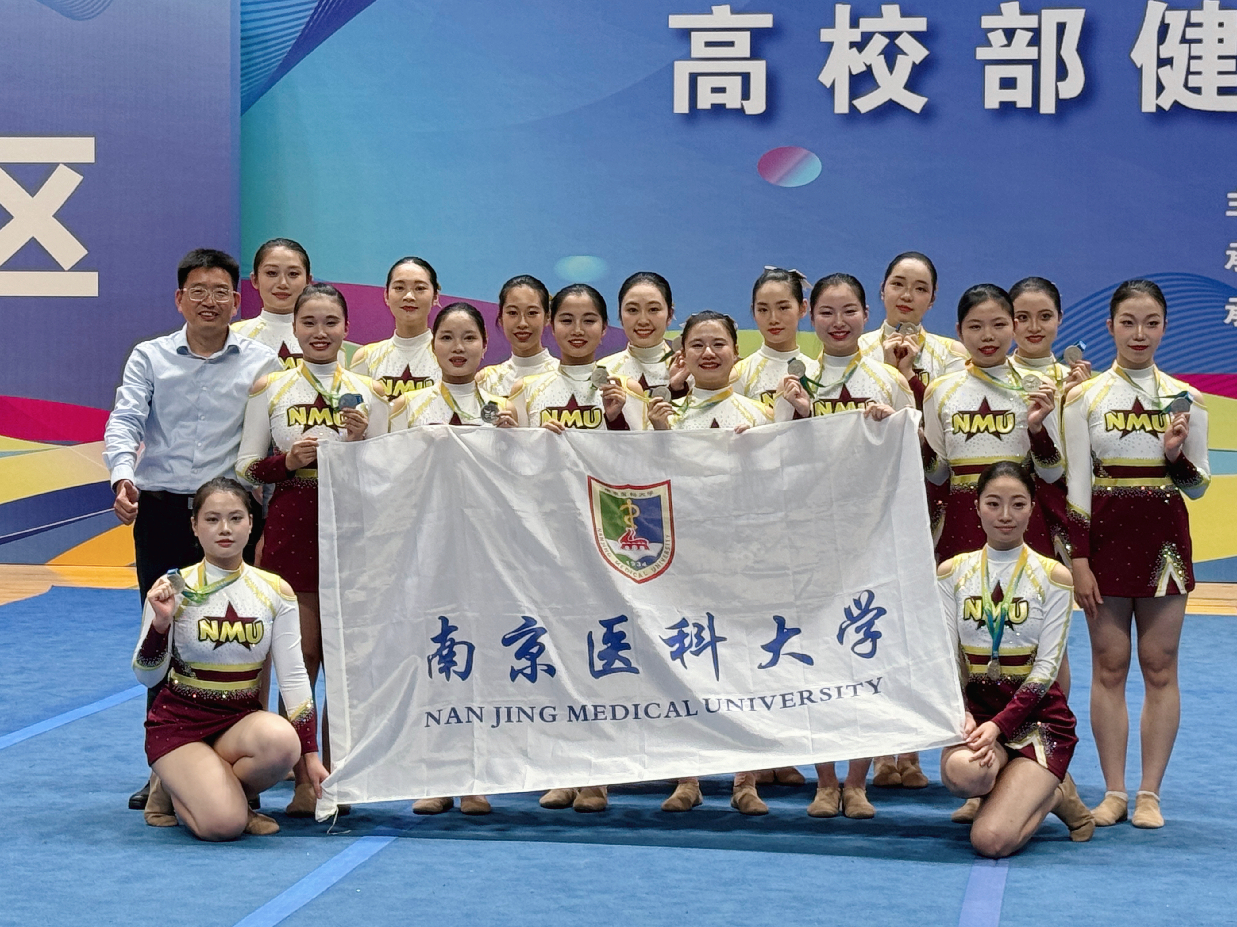10月30日至11月2日江苏省第二十一届运动会高校部健美操比赛在中国药科大学圆满落幕。我校啦啦操队奋勇拼搏,表现出色,从32所高校、483名运动员中脱颖而出最终获得花球啦啦操亚军、女子单人操第五名、团体总分第七名“体育道德风尚奖”,载誉而归。