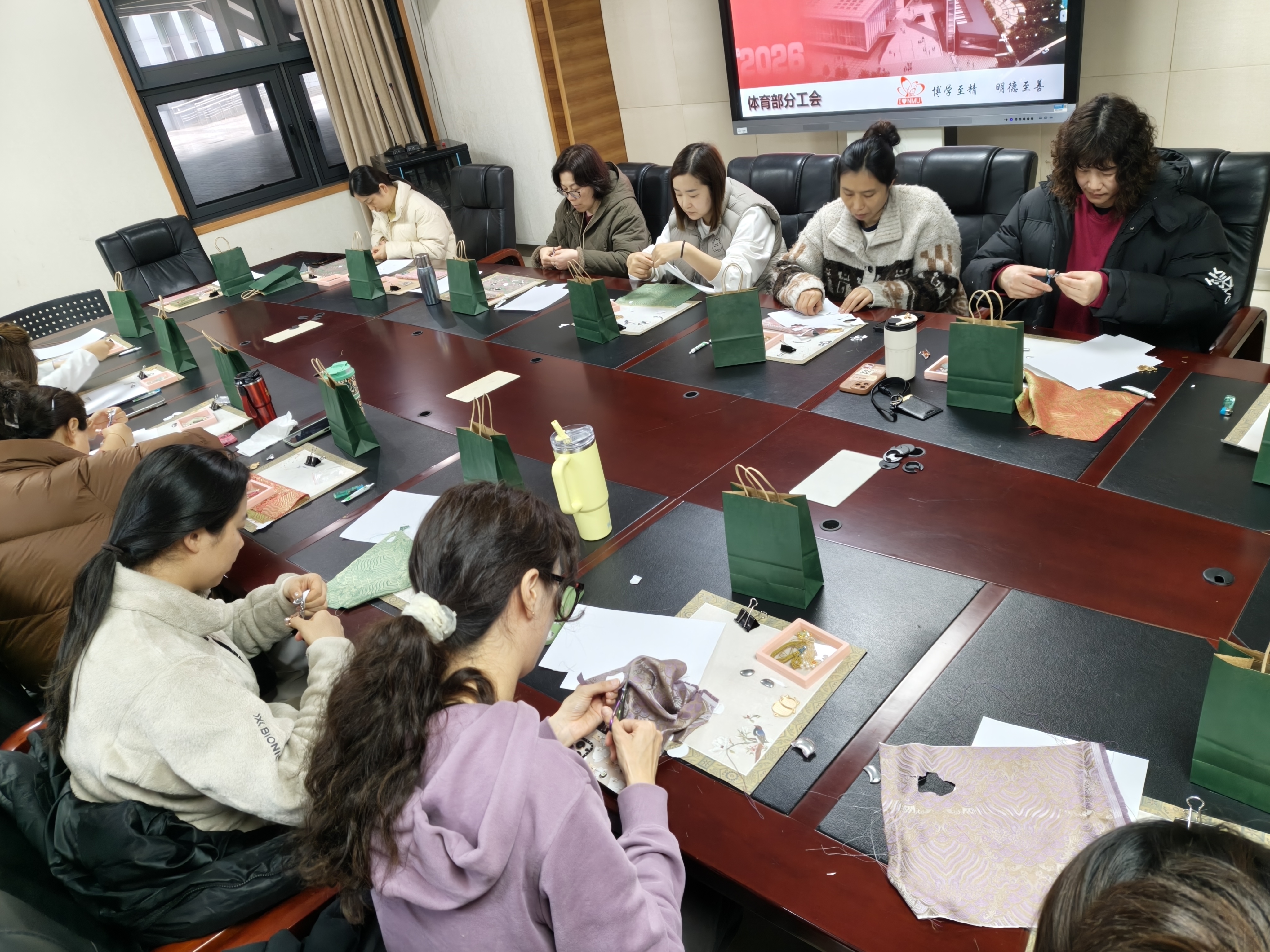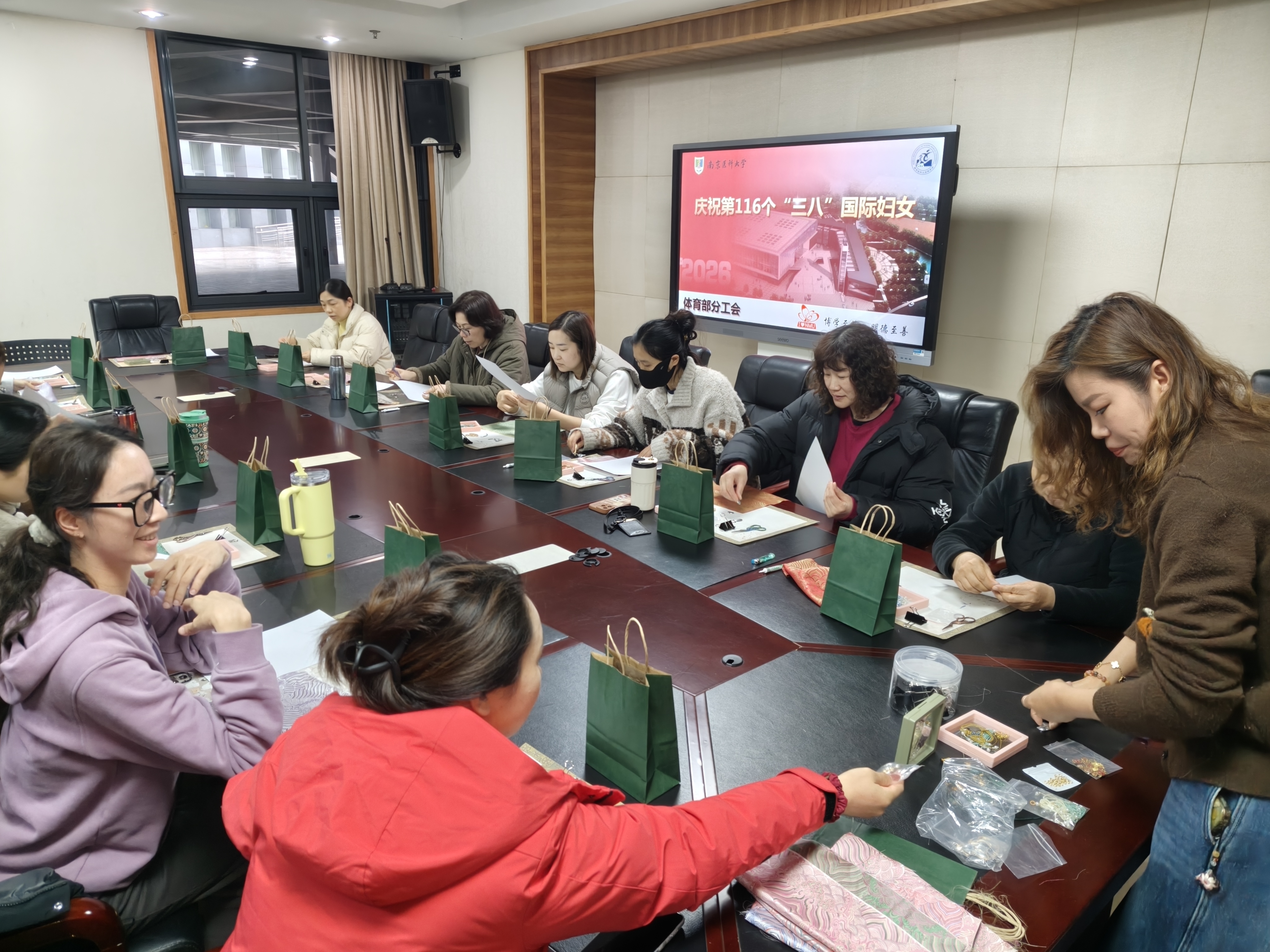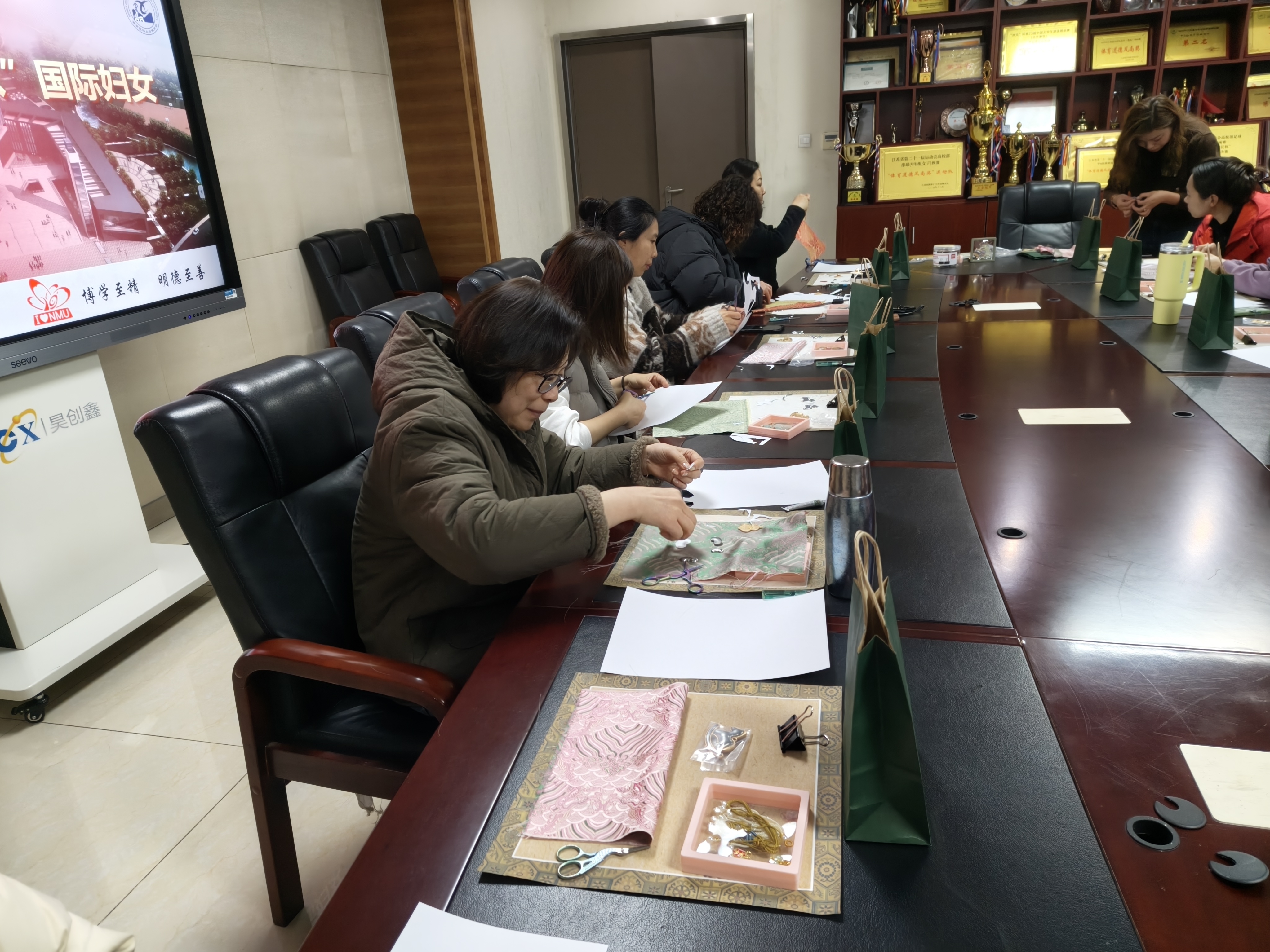 为庆祝 第116个“三八” 国际劳动妇女节,3 月 16 日上午 10:00,南京医科大学体育部分工会组织全体女教职工开展宋锦手工制作活动,共庆佳节。