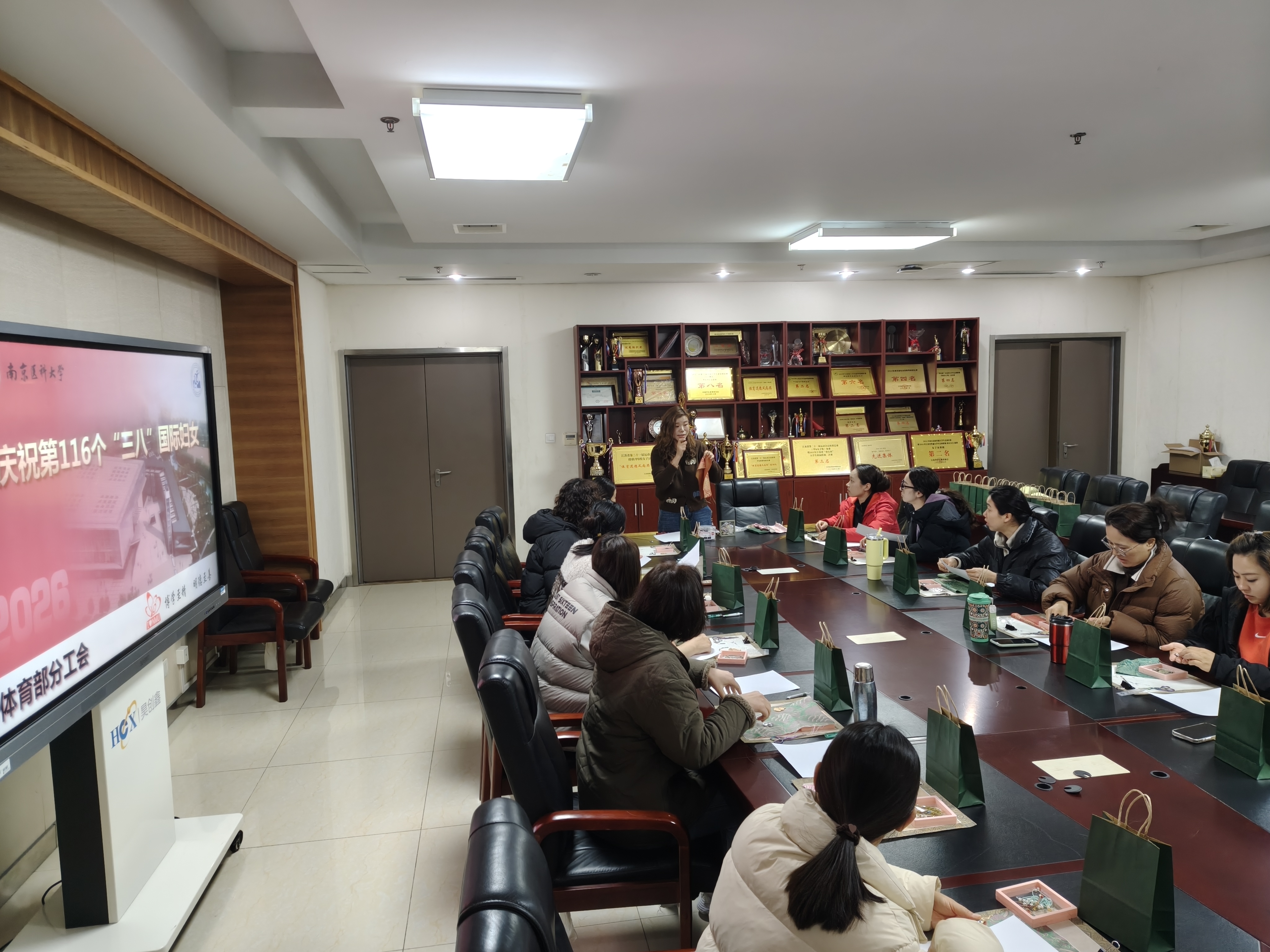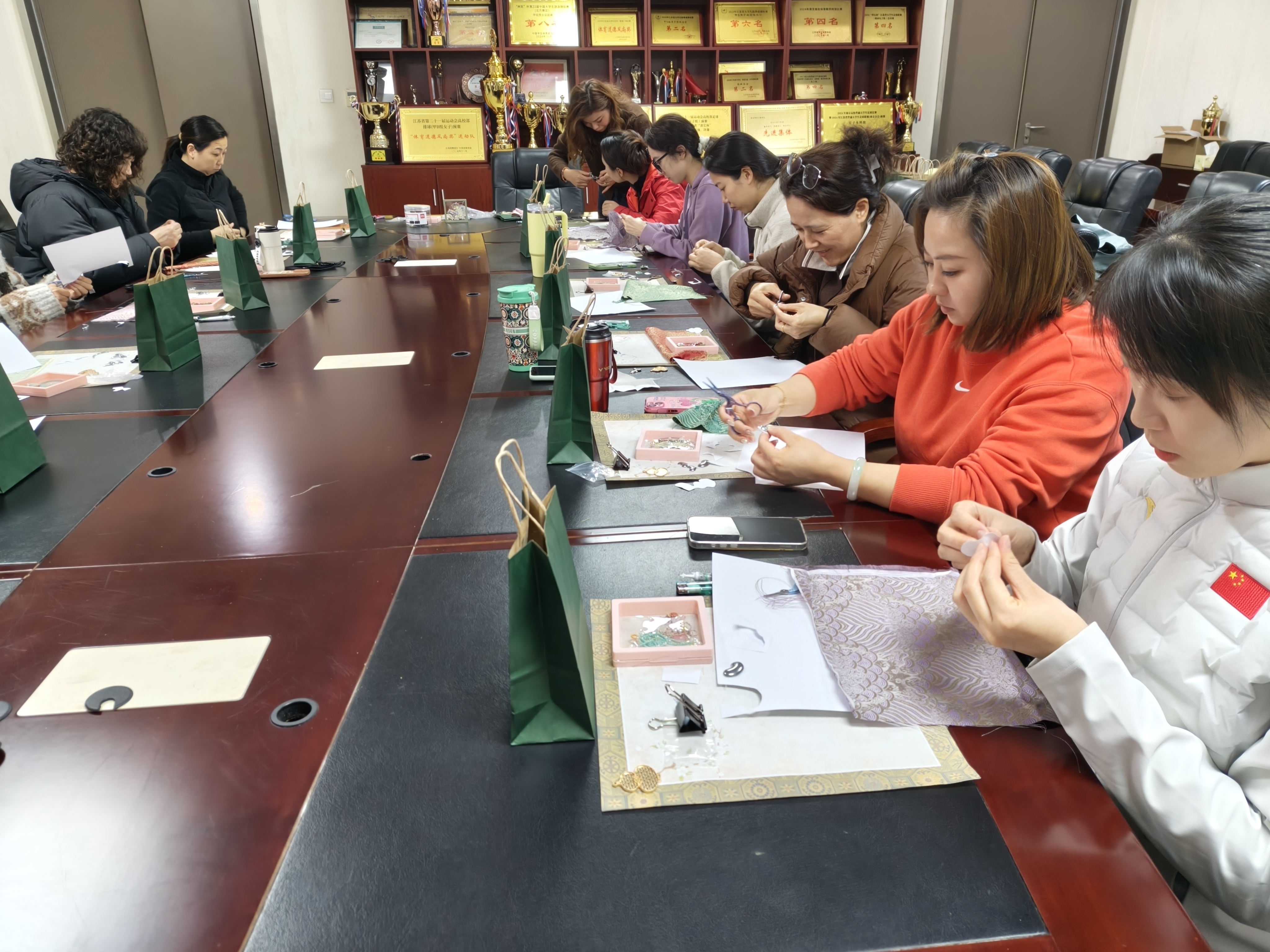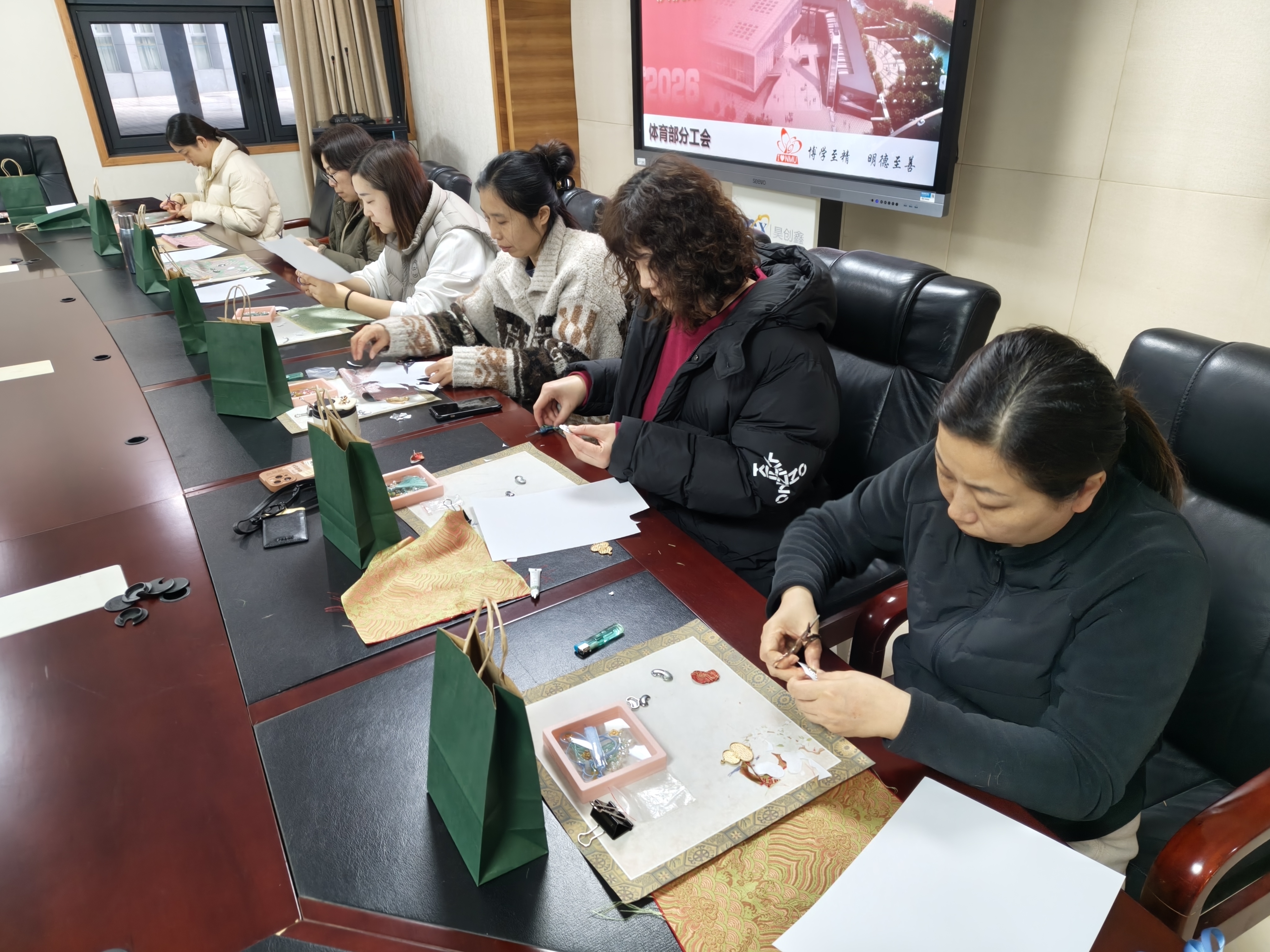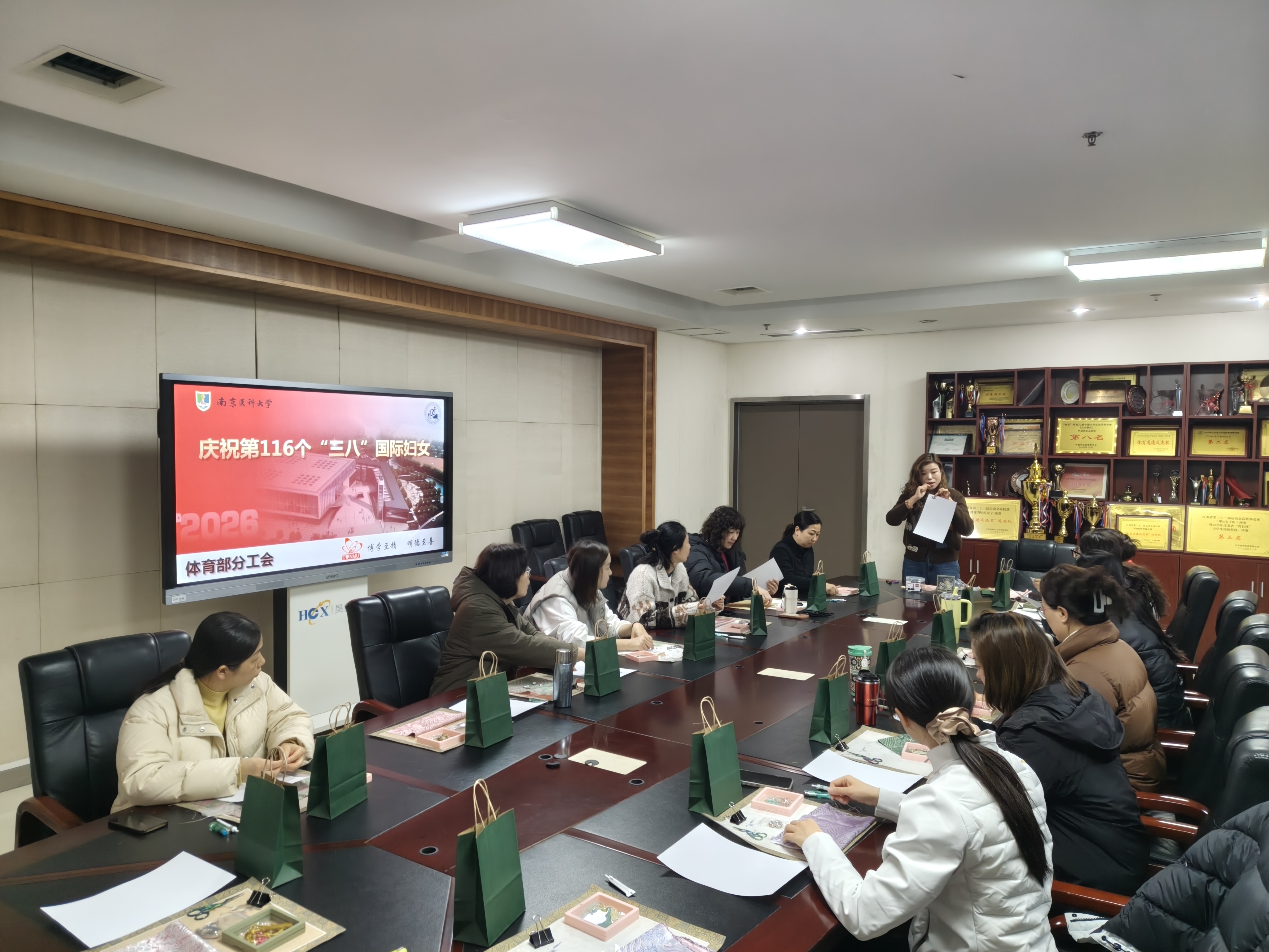 为庆祝 第116个“三八” 国际劳动妇女节,3 月 16 日上午 10:00,南京医科大学体育部分工会组织全体女教职工开展宋锦手工制作活动,共庆佳节。